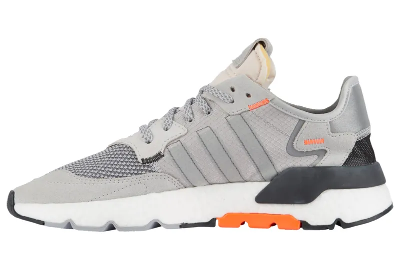 The adidas Nite Jogger was first introduced in 1980 as a shoe for runners who ran for long periods of time from day to night. The Nite Jogger 'Grey Orange' 'Grey Orange' modernized the retro classic for an April 2019 release. This all-day shoe is outfitted with a nylon ripstop and mesh upper, enhanced by suede overlays and reflective details. Below, this version is upgraded with adidas' energy-returning Boost midsole.